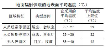 (1)供水溫度過(guò)高,在供暖初期地表面溫度過(guò)高,不滿(mǎn)足規(guī)范要求、且室內(nèi)燥熱。輻射供暖的地表面平均溫度宜符合下表的規(guī)定: