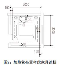 在設(shè)計(jì)階段,布置加熱管時(shí),應(yīng)考慮家具的遮擋,并將溫度較高的進(jìn)水管段優(yōu)先布置在熱損失較大的外墻及外窗部位,且外墻及外窗附近的加熱管的間距,可適當(dāng)減小。如圖2所示: