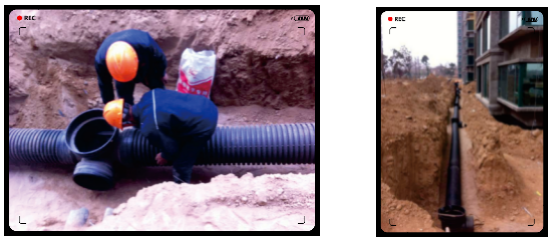 高密度聚乙烯是高分子聚合物,其雙壁波紋管剛?cè)峒鎮(zhèn),具有較高的環(huán)剛度和良好的柔韌性,故在應(yīng)用中,無(wú)需混凝土管基、溝槽驗(yàn)收合格后即可直接覆管,實(shí)現(xiàn)邊開挖、邊下管、邊回填,簡(jiǎn)化了施工程序,極大地縮短了工期。其良好的環(huán)剛度可保證管道敷設(shè)路面的重載通行安全,可使管道克服地震、地面不均勻沉降造成的破壞應(yīng)力,提高了公用設(shè)施的抗震能力和長(zhǎng)期運(yùn)行可靠性。