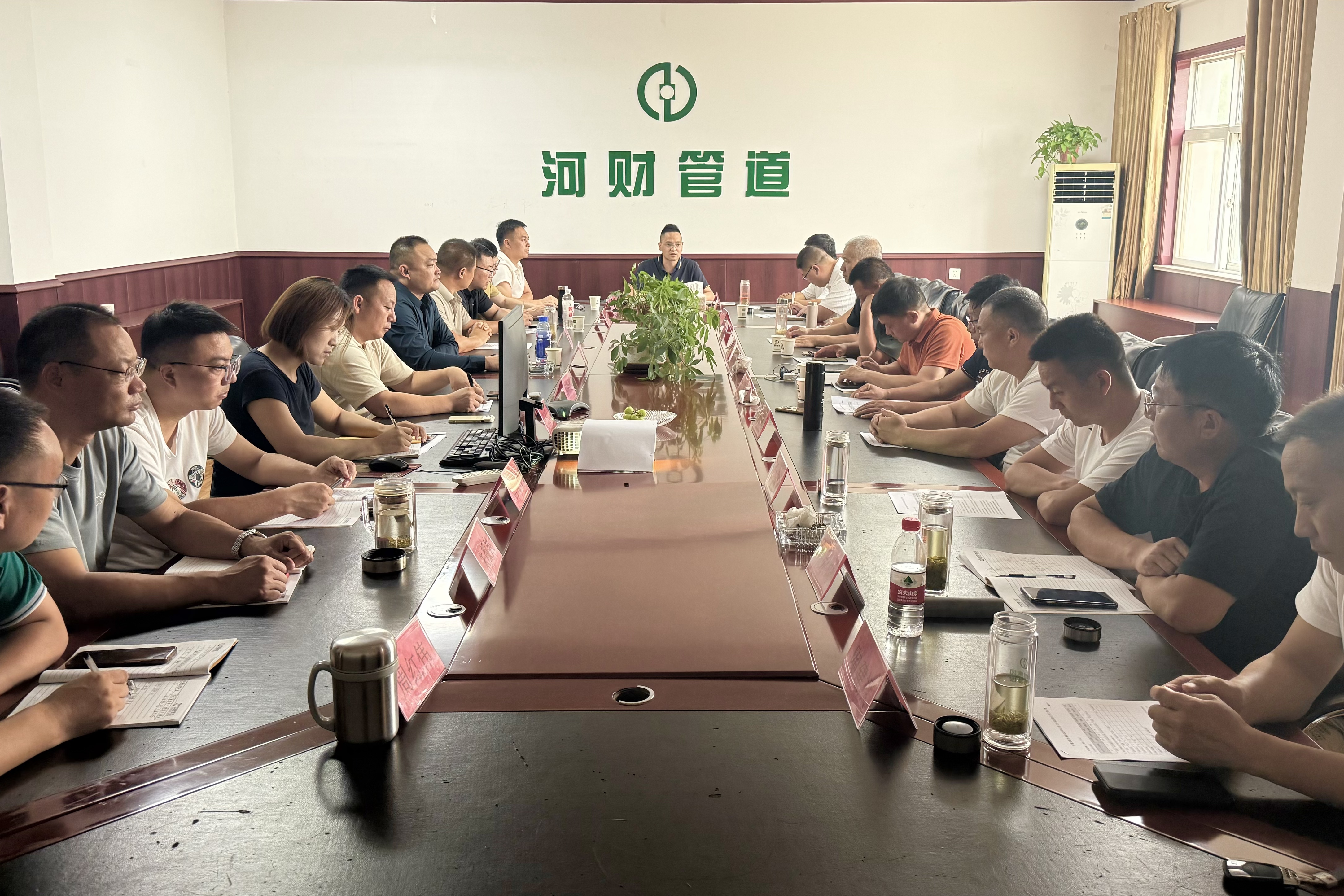 河財訊 河南河財管道2025年8月份營銷工作會議于9月2日在公司二樓會議室召開,公司總經(jīng)理、各營銷機(jī)構(gòu)負(fù)責(zé)人、內(nèi)務(wù)相關(guān)部室負(fù)責(zé)人參會,會議由總經(jīng)理張總主持。
