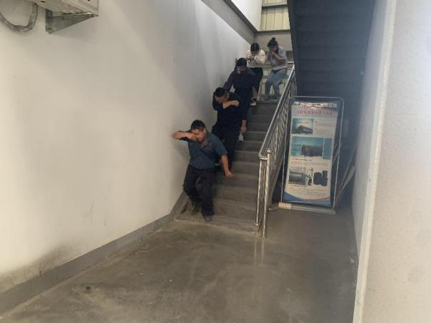 火災(zāi)撲救演練結(jié)束后,模擬逃生救援,消防警官講授逃生方法及注意事項(xiàng),組織現(xiàn)場(chǎng)人員疏散、有序逃生。